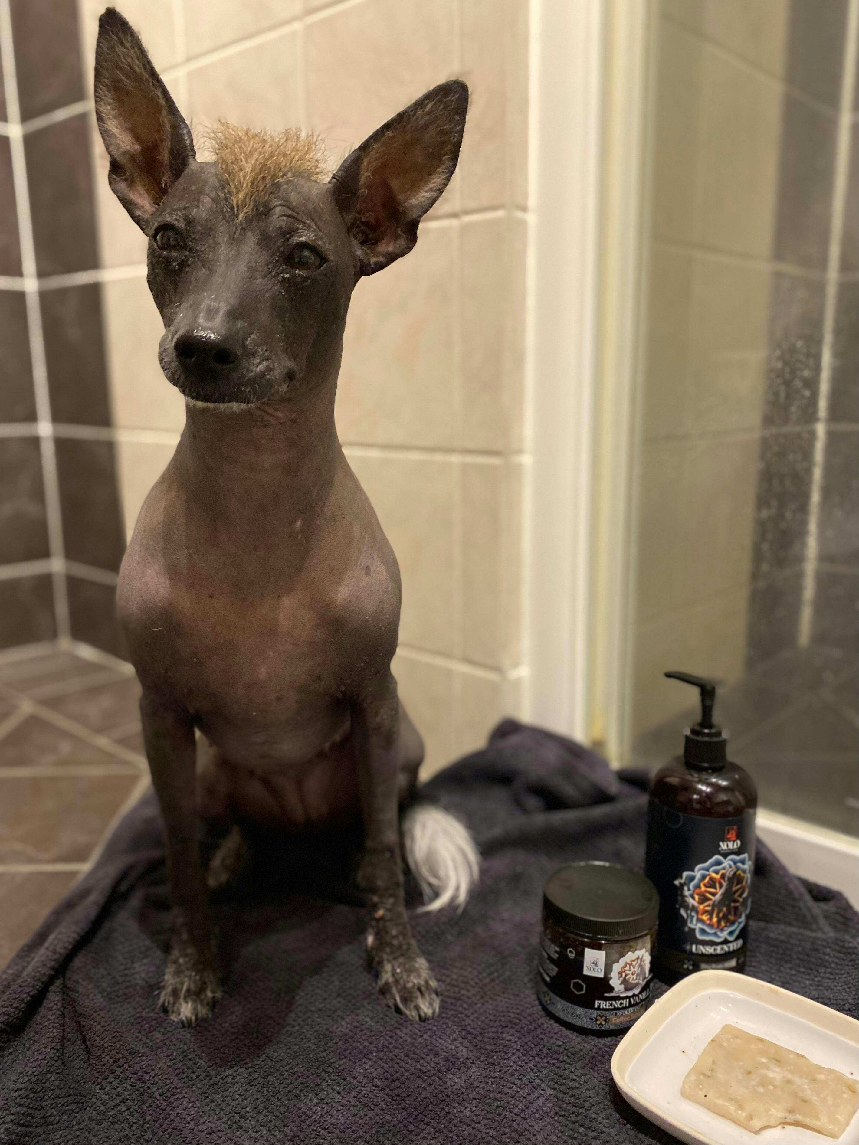 Just remember, to keep your pup's skin feeling happy and healthy, limit exfoliation to once a month or whenever those pesky spots need a little extra TLC.